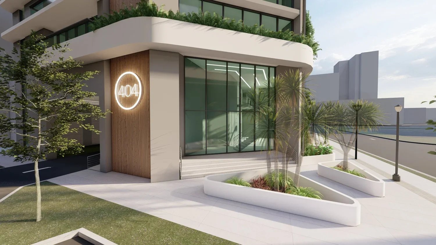 404 NW1 is a 7-story mixed-use multi-family residential building, approx. 70,000square foot building on an existing 11,750 square foot site in the RAC-UV (near the downtown character area). The building consists of ground floor commercial retail (approx. 900 square feet), a parking area, and back-of-house rooms servicing the building. The residential tower consists of 23 residential units with 3 prototypical units consisting of 1 bedroom/1 bathroom, 2 bedroom/2 bathroom and 3 bedrooms/2-bathroom layouts. The 8th floor (top of podium) is dedicated as the amenity deck with interior and exterior spaces including a pool deck, gym, and lounge.